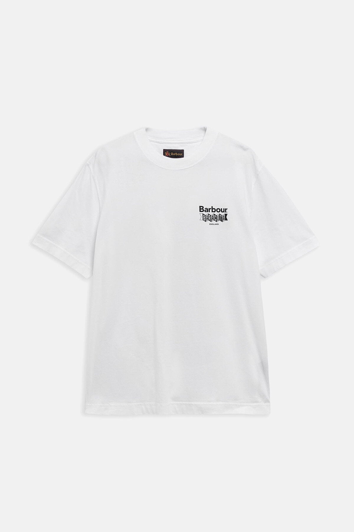 Für alle, die in dieser Saison mit ihrer Garderobe ein Statement setzen möchten, ist das Barbour x Baracuta All Nighter T-Shirt die perfekte Wahl. Der lässige Oversize-Stil zeigt einen großen Grafikdruck auf dem Rücken und ein kleines Branding auf der Brust, das auf Northern Soul verweist.