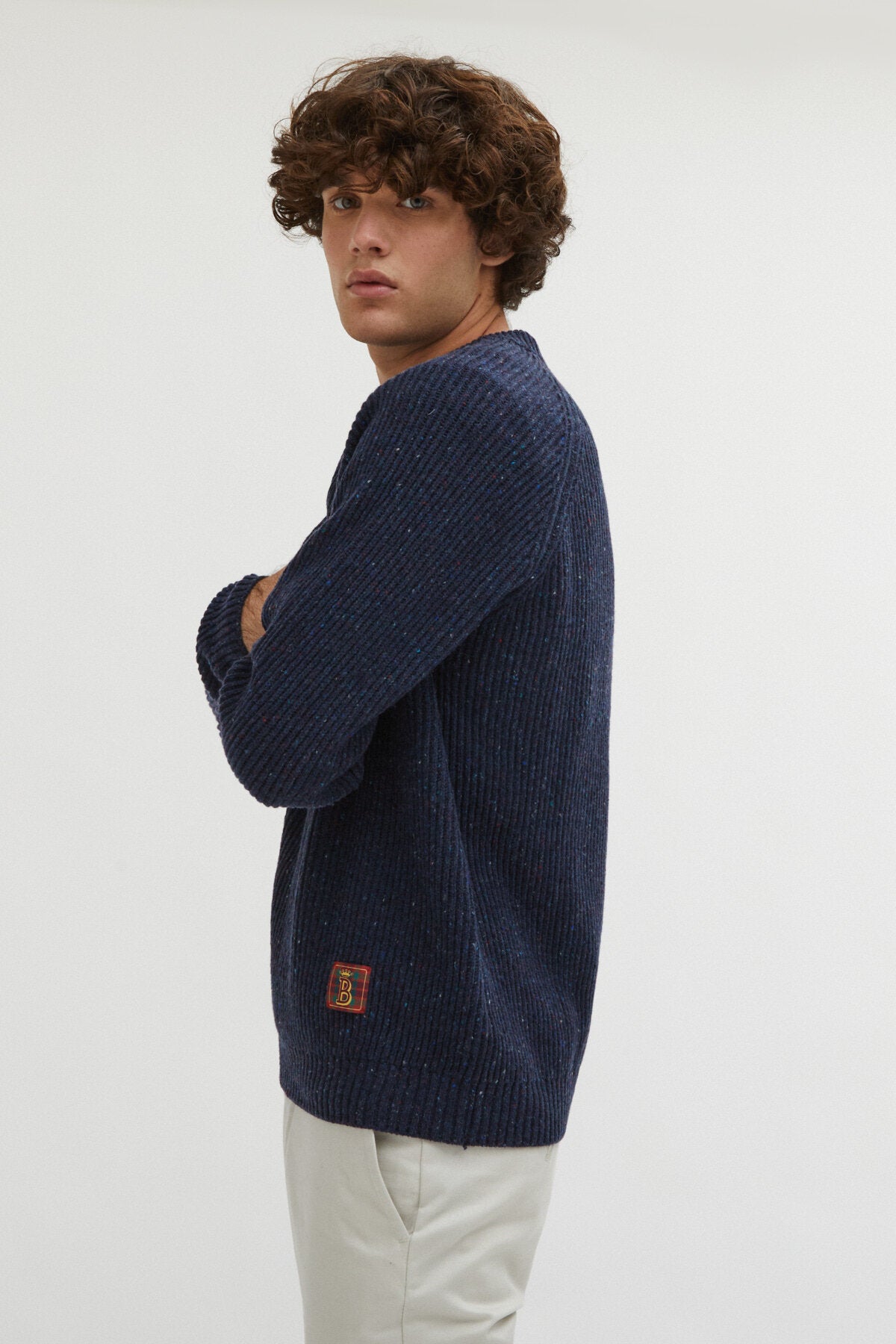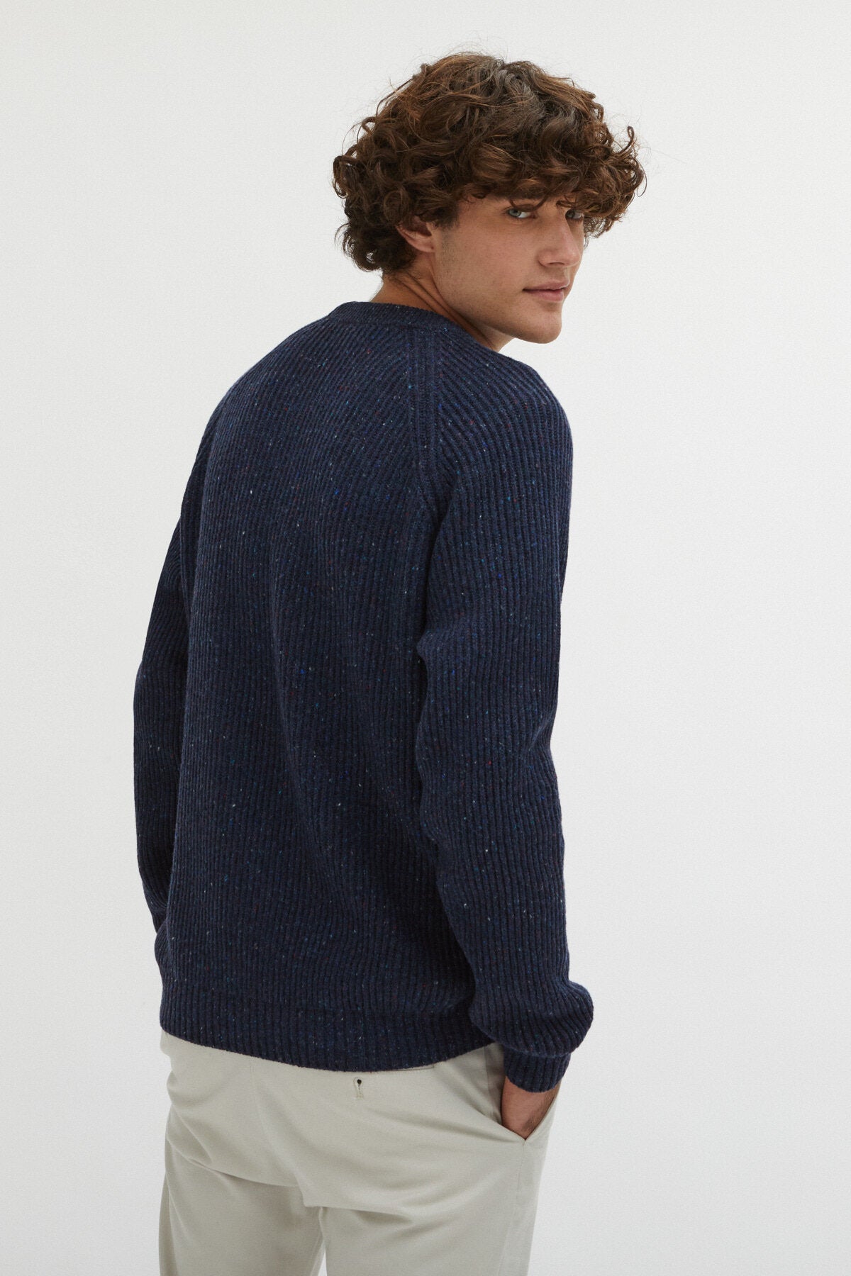 Wenn Sie in dieser Saison auf der Suche nach einem weichen Pullover sind, haben wir das Richtige für Sie. Inspiriert von den irischen Küstenfischern auf den Aran-Inseln und in Donegal ist der Rundhalspullover Fisherman ein Pullover aus recycelter Wolle. Der englische Rippenstrick ist ein reversibles Muster, das ein dickes Gewebe erzeugt und dem Garn Volumen und Elastizität verleiht. Der Rundhalsausschnitt und die Raglanärmel machen dieses Kleidungsstück bequem und funktionell. Made in Italy.