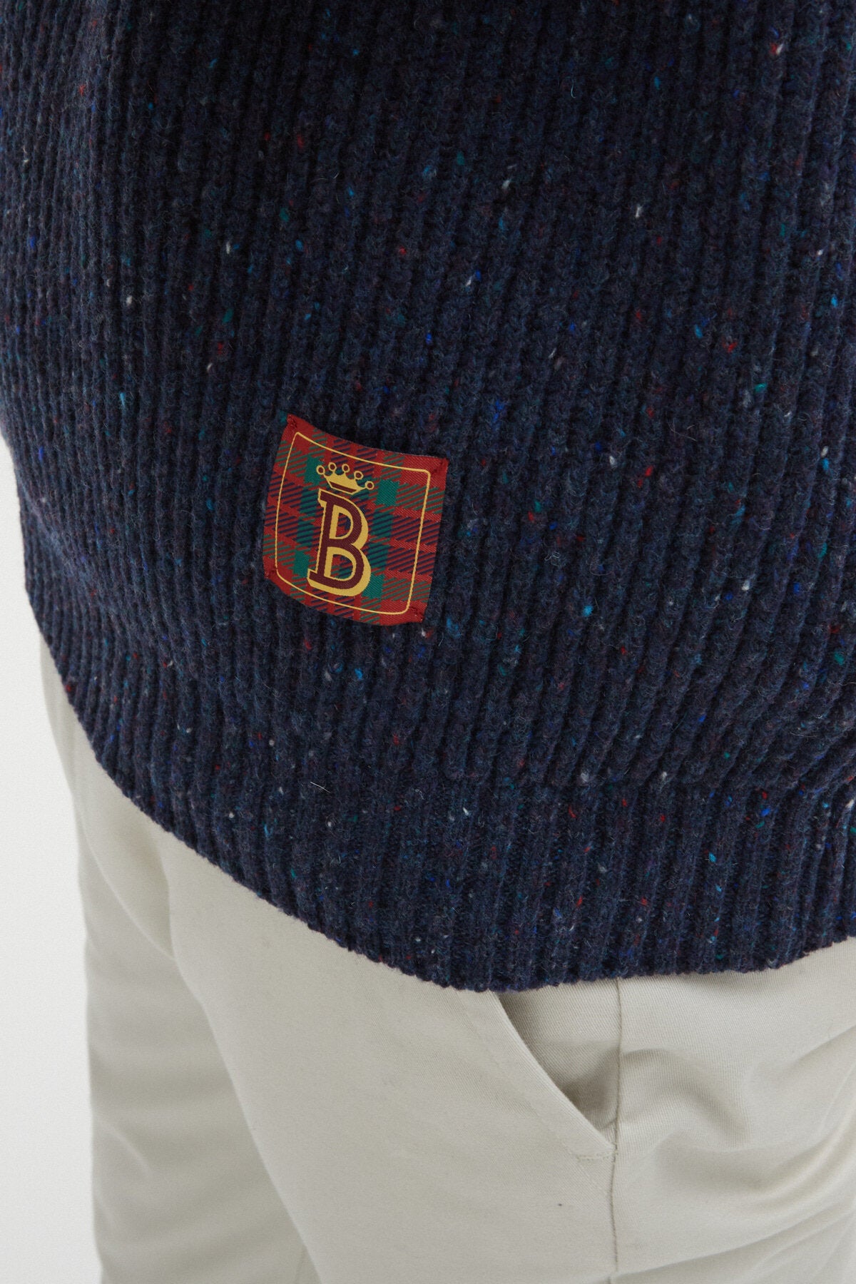 • Jacquard-Etikett mit Basis aus Fraser-Tartan und 'B' von Baracuta