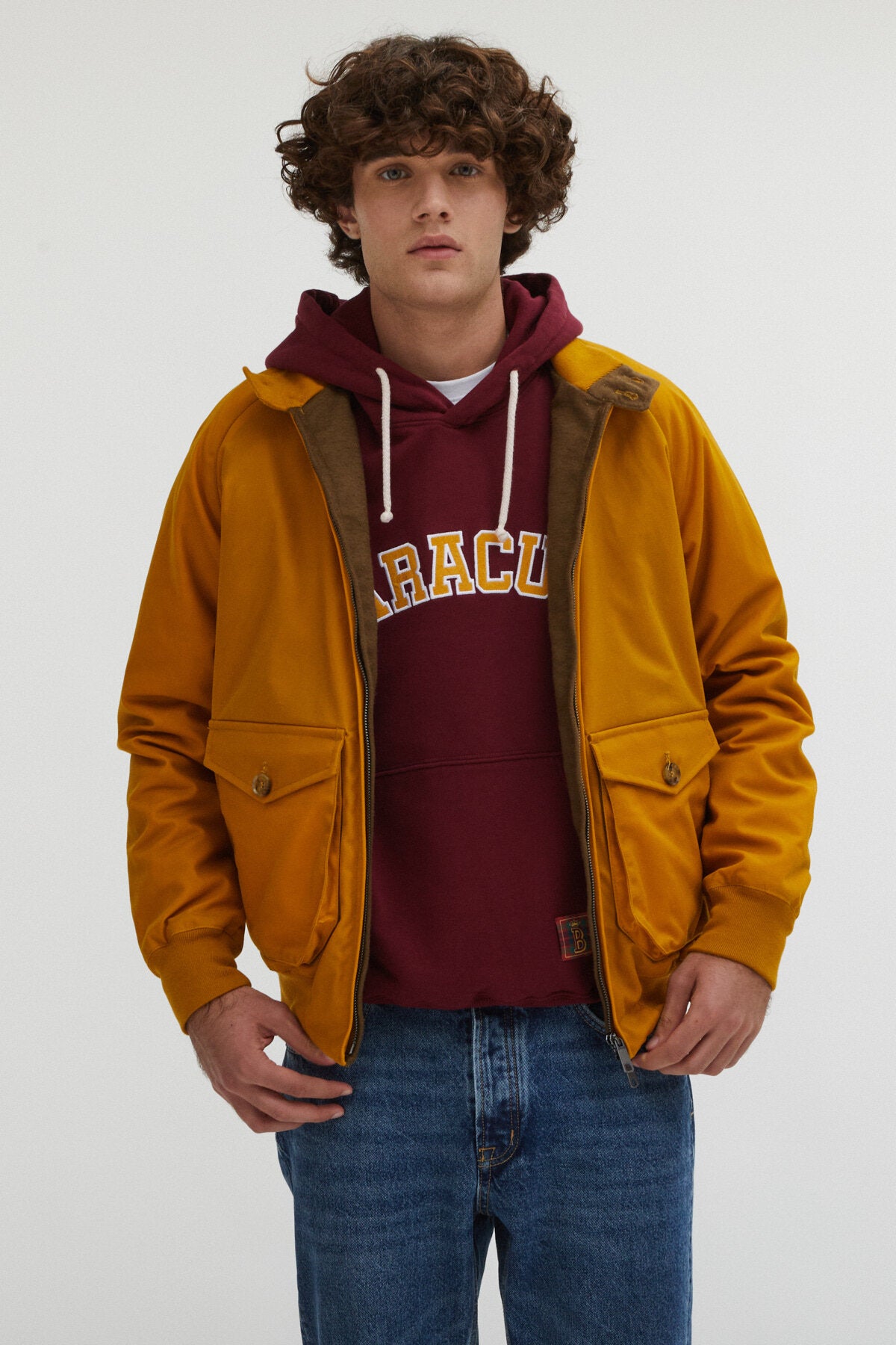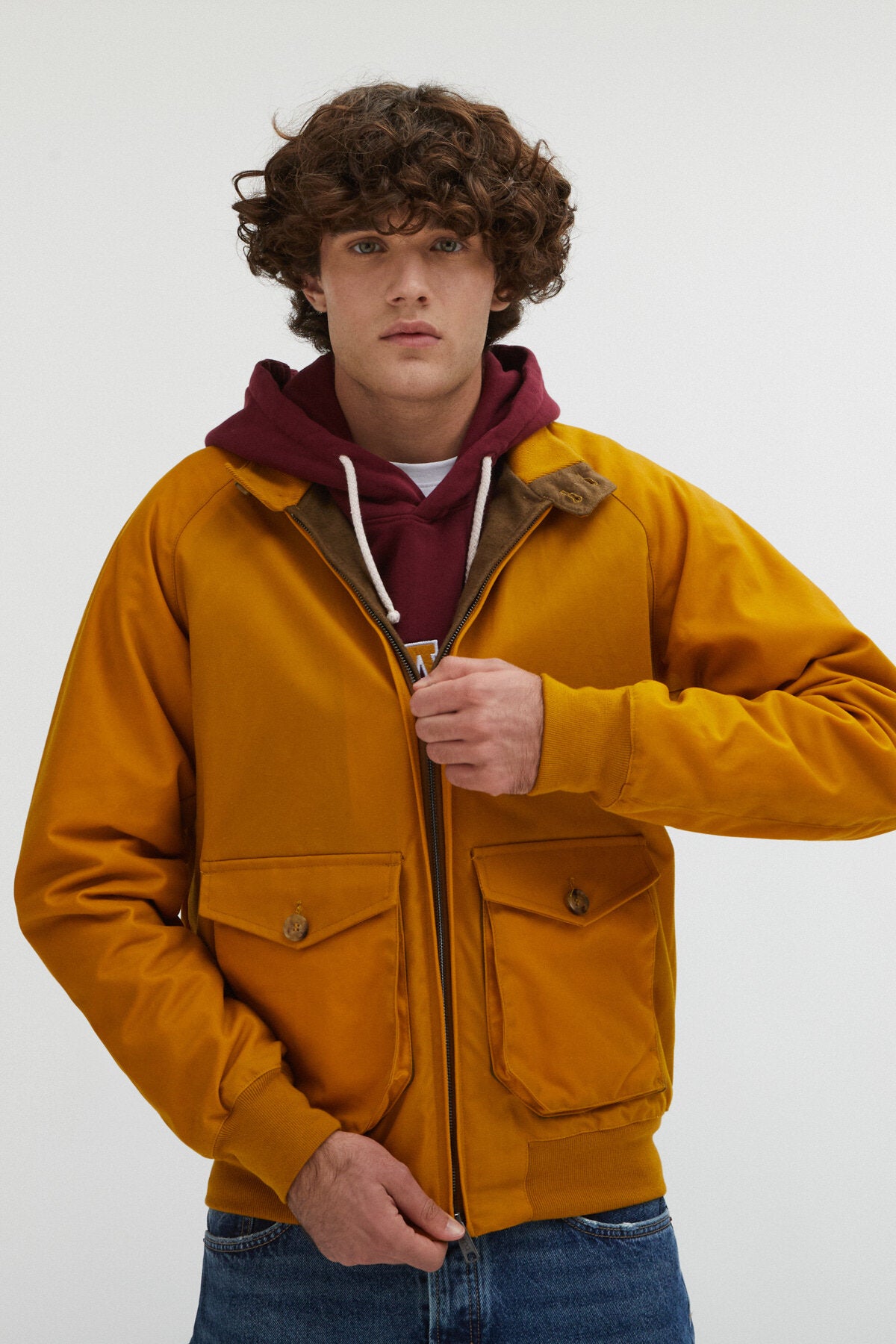 • Baracuta-Kragen mit zwei Knöpfen und gerippter Innenseite
