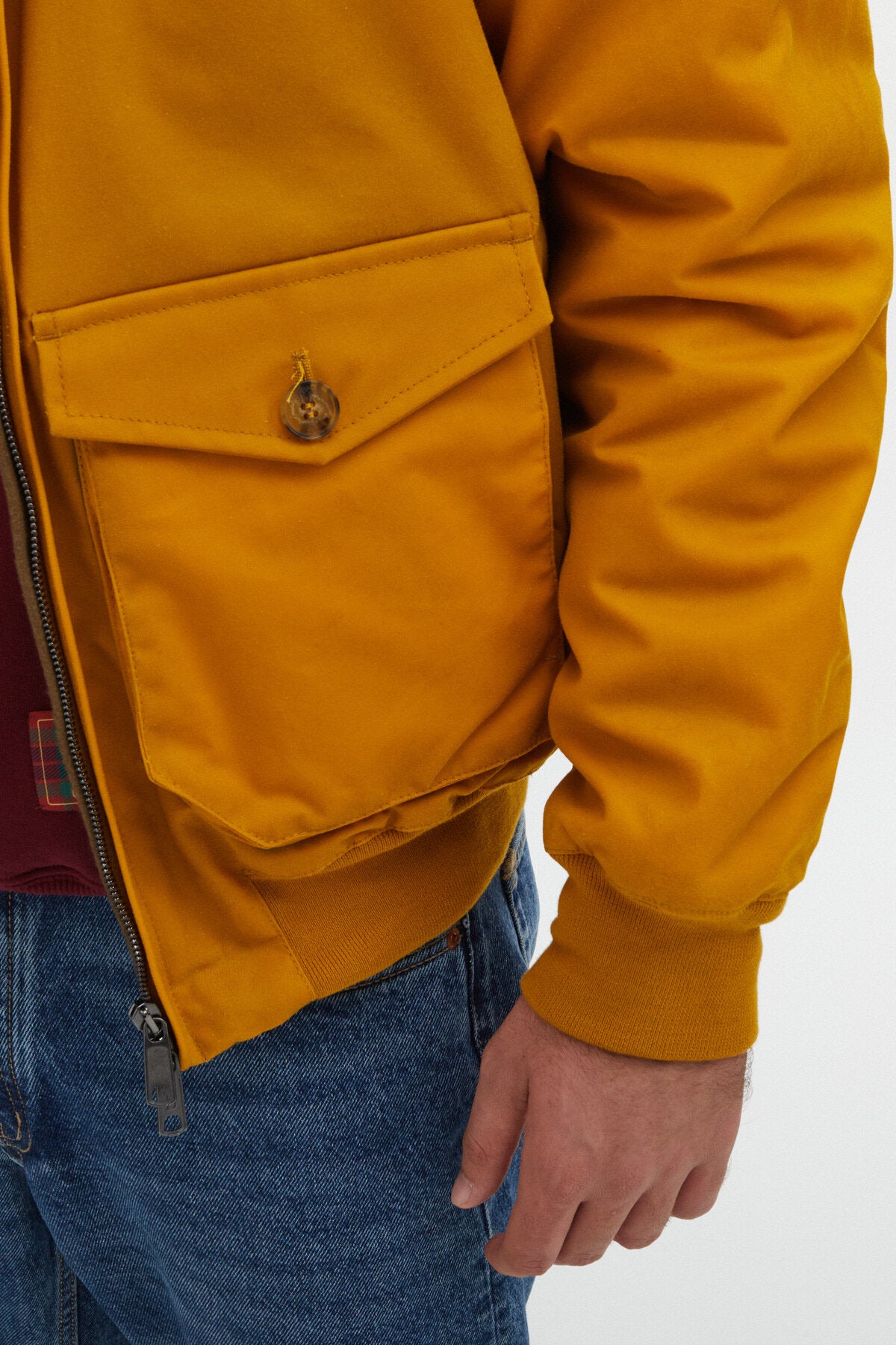 Mit unserer G9 Jacke aus gewachster Baumwolle von British Millerain mit Taschen, dem ursprünglichen Hersteller dieses Stoffes seit 1880, sind Sie für nasses und windiges Wetter gerüstet. Die Authentic Fit-Jacke ist weiter und entspannter als die Regular Fit-Jacke, die Sie in unserm klassischen G9 Harrington finden. Die Jacke hat eine leichte Änderung der traditionellen G9-Merkmale: Anstelle der charakteristischen schrägen Seitentaschen haben wir zwei größere Taschen in der Mitte der Jacke angebracht. Zu den weiteren Merkmalen des G9 gehören der kultige Schirmrücken und der klassische Eselsohr-Kragen mit zwei Knöpfen. Tragen Sie ihn mit unserem gewachsten Bucket Hat für maximalen Schutz vor Regen!
