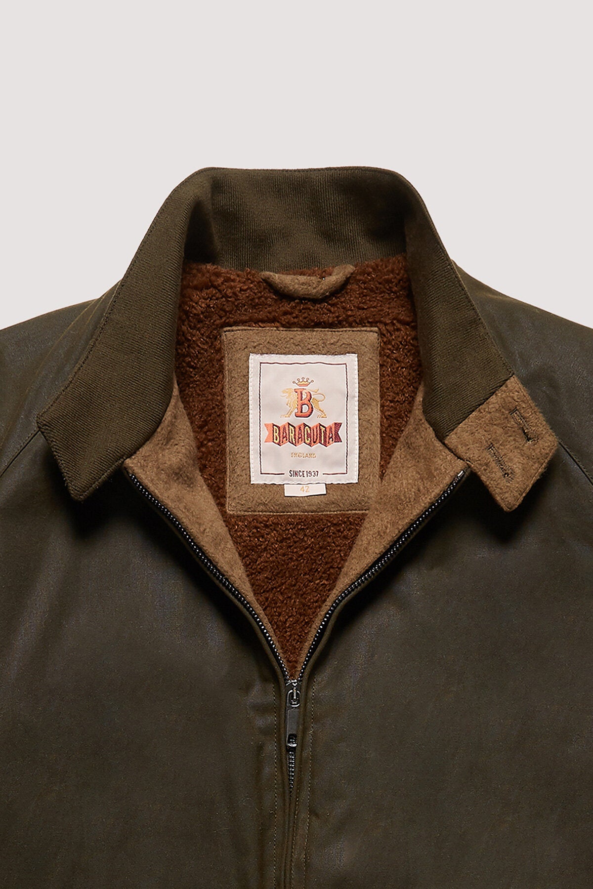 • Baracuta-Kragen mit zwei Knöpfen und gerippter Innenseite