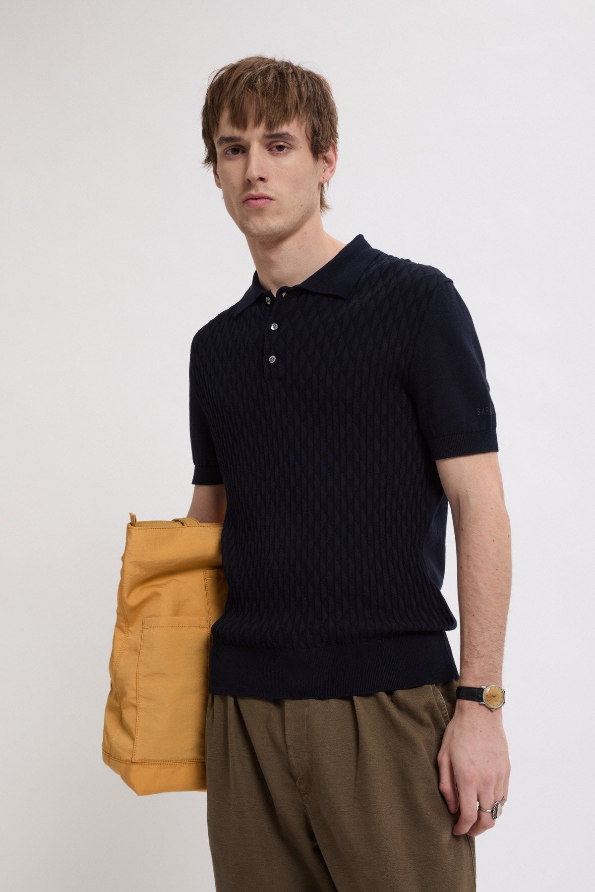 Das Pattern Stitch SS Polo besteht aus 100% Baumwolle, sorgfältig ausgewählt für ihre langlebige Qualität. Baumwolle bietet natürliche Atmungsaktivität und Strapazierfähigkeit und eignet sich ideal für den täglichen Gebrauch. Das besondere Highlight ist das diamantförmige Strickmuster auf der Vorderseite, das durch präzise Stricktechnik entsteht.