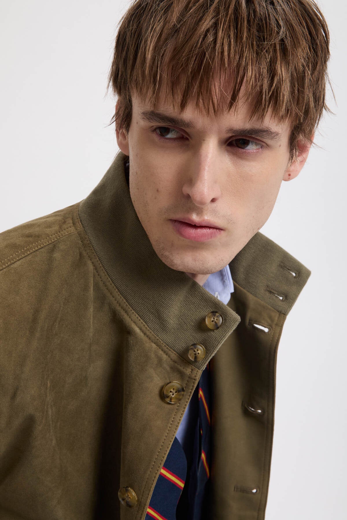 • Der Suede Blouson ist eine Jacke, die für Langlebigkeit gemacht und für den täglichen Gebrauch konzipiert wurde. Jedes einzelne Modell wird sorgfältig aus weichem, vollnarbigem Veloursleder zugeschnitten – ausgewählt für seine Stärke, Geschmeidigkeit und natürliche Struktur. Der gerippte Stehkragen, die elastischen Ärmelbündchen und der elastische Saum sowie die eingesetzten Ärmel sind nicht nur Designdetails, sondern das Ergebnis jahrzehntelanger Erfahrung in der Herstellung von Jacken, die sich mit Ihnen bewegen und dennoch ihre Form behalten. Vollständig mit Fraser‑Tartan gefüttert, spiegelt die Jacke das Erbe von Baracuta wider – eine Hommage an die Wurzeln der Marke und ihre Liebe zu den Details, die wirklich zählen. Eine Jacke für jeden Tag.