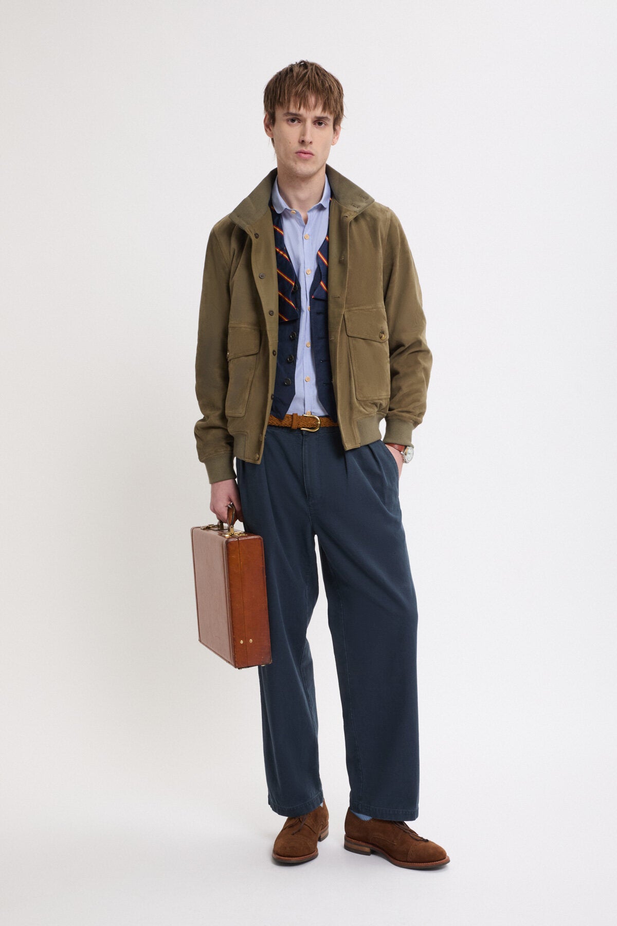 Der Suede Blouson ist eine Jacke, die für Langlebigkeit gemacht und für den täglichen Gebrauch konzipiert wurde. Jedes einzelne Modell wird sorgfältig aus weichem, vollnarbigem Veloursleder zugeschnitten – ausgewählt für seine Stärke, Geschmeidigkeit und natürliche Struktur. Der gerippte Stehkragen, die elastischen Ärmelbündchen und der elastische Saum sowie die eingesetzten Ärmel sind nicht nur Designdetails, sondern das Ergebnis jahrzehntelanger Erfahrung in der Herstellung von Jacken, die sich mit Ihnen bewegen und dennoch ihre Form behalten. Vollständig mit Fraser‑Tartan gefüttert, spiegelt die Jacke das Erbe von Baracuta wider – eine Hommage an die Wurzeln der Marke und ihre Liebe zu den Details, die wirklich zählen. Eine Jacke für jeden Tag.