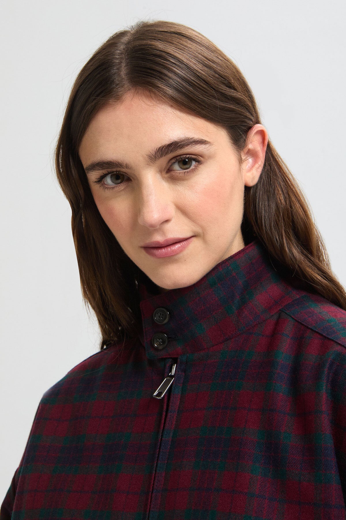 • The Check G9 Box Jacket Woman gives the iconic G9 a fresh remix, same legend, new attitude. Cut from a refined tartan fabric flipped to the outside, it brings a modern twist to a timeless classic, paired with a comfortable boxy fit. A proper nod to heritage done right, featuring a distinctive back panel with small perforations at the umbrella yoke, that reveal the iconic Fraser Tartan lining. It blends sophistication, versatility, and that unmistakable British charm.