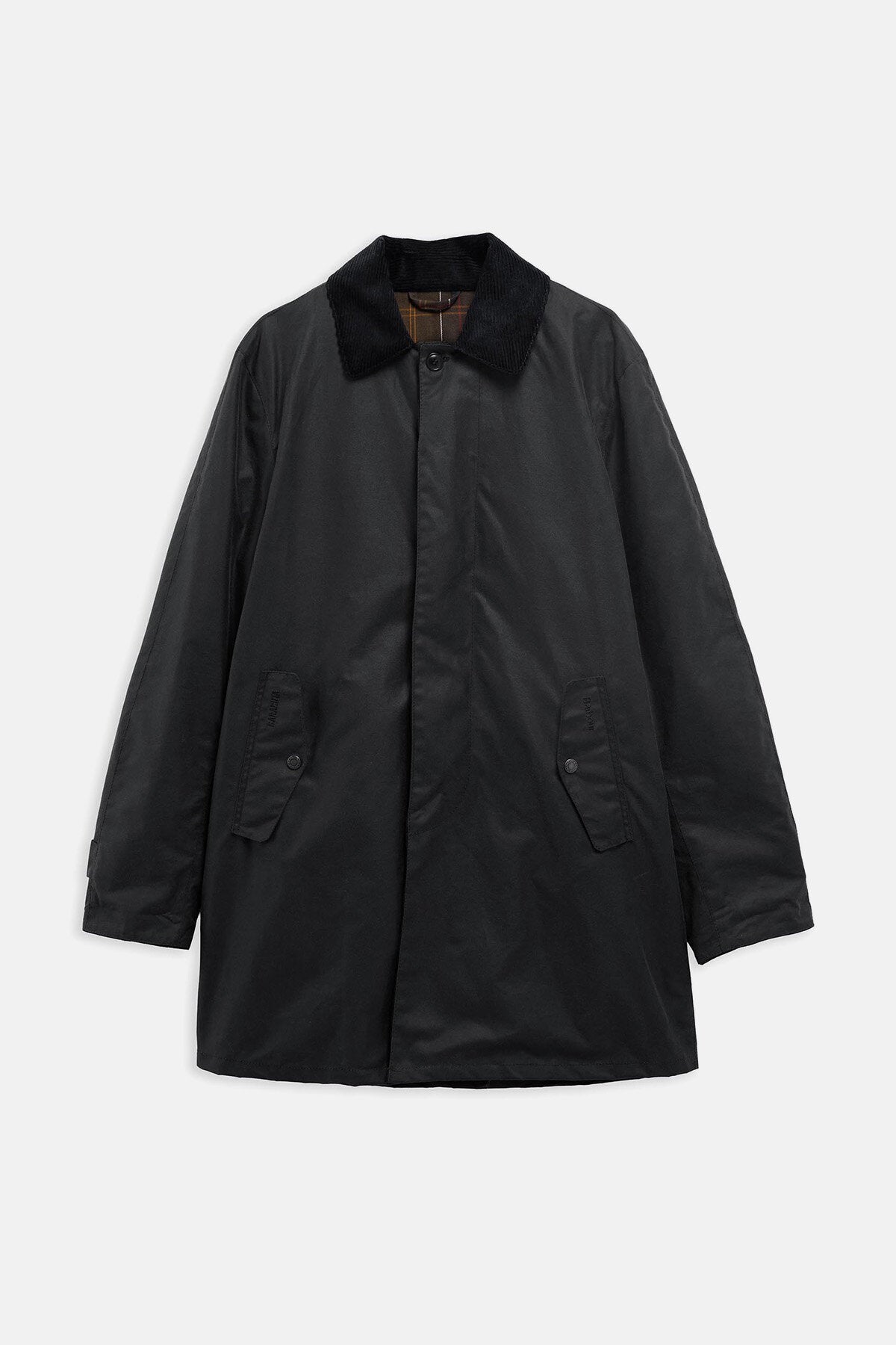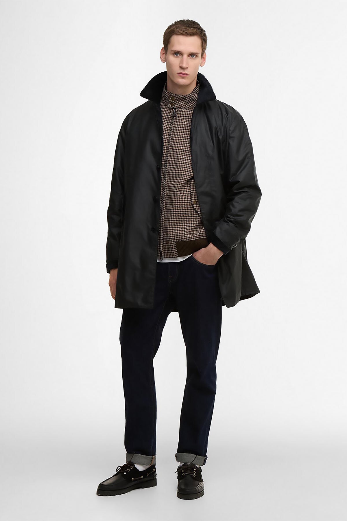 • • Nuovo design frutto della collaborazione, il cappotto Tyne Wax riprende la lunghezza del Baracuta G10 in Sylk Oil 6oz.