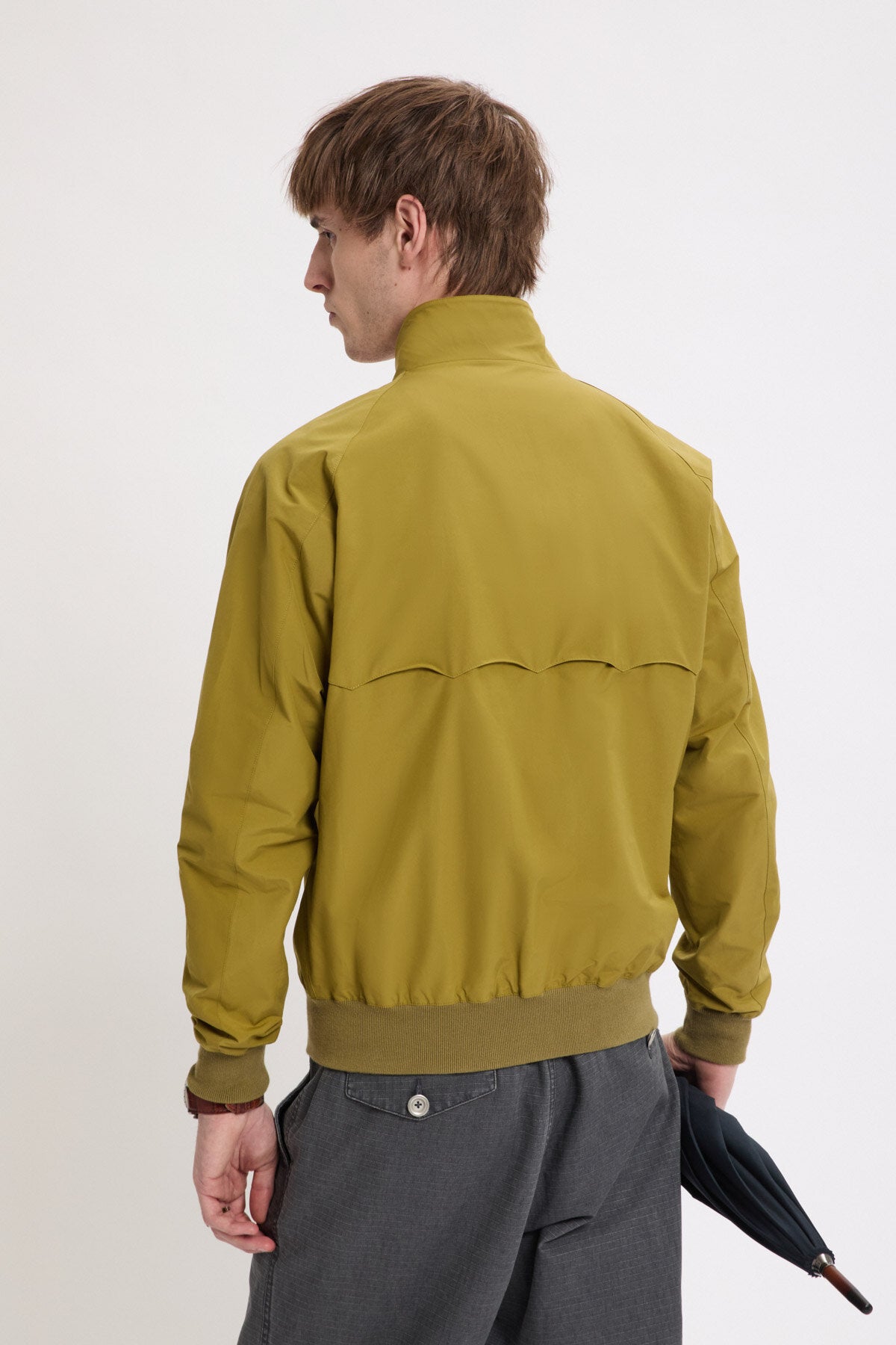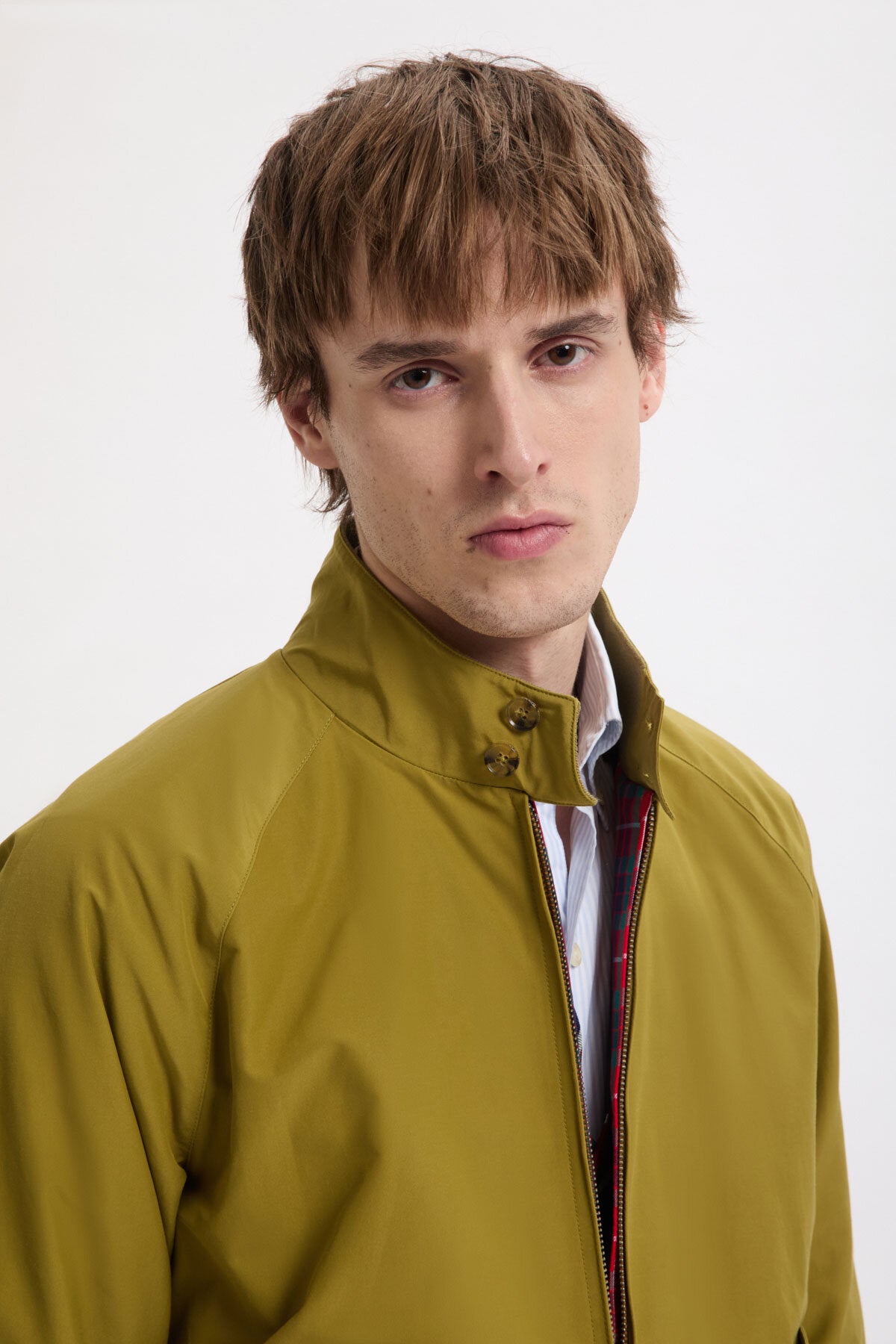 • Ci sono pochi capi più British del G9 Baracuta, l'unica e sola giacca Harrington originale. Si tratta di una vera e propria icona di abbigliamento, che abbraccia anche diverse subculture, disegnata e realizzata nel Regno Unito sin dal 1937. La giacca è foderata con l'iconico Fraser Tartan, realizzata in tessuto Coolmax® traspirante. Altre caratteristiche sono il classico colletto a due bottoni, le tasche profonde, ideate inizialmente per contenere due palline da golf, i polsini e l'orlo a coste. Rifinito dall'inconfondibile spallone con motivo ad ombrello, ideale protezione dalla pioggia. Baracuta e il G9 sono pronti a coprirvi le spalle ... letteralmente! Realizzato da sempre nel Regno Unito e creato appositamente per l'imprevedibile clima britannico, si presta ad essere indossato in qualsiasi ambiente, da qualsiasi persona e in qualsiasi stagione. Vi consigliamo di abbinarlo ai nostri pantaloni di velluto a coste e al maglione girocollo Shetland per le serate con gli amici.