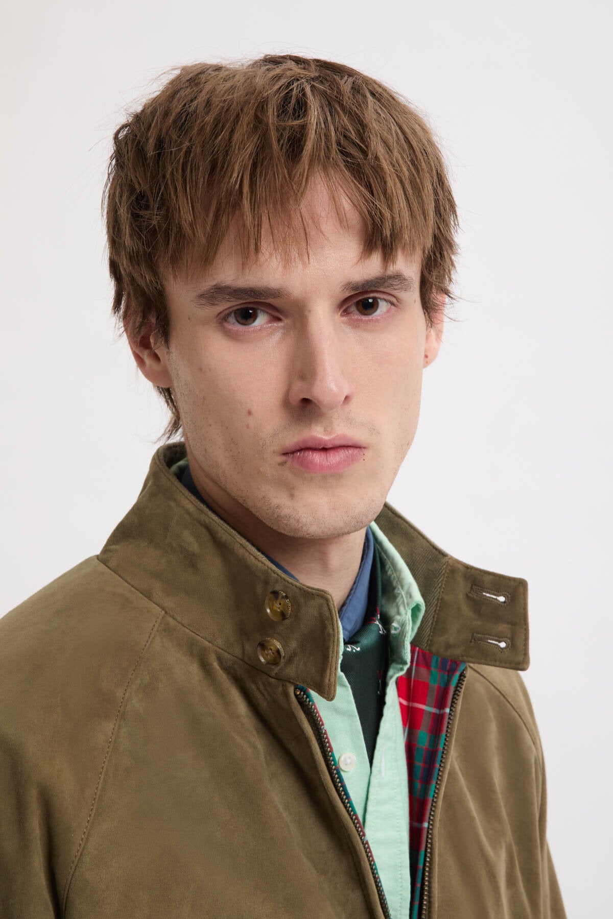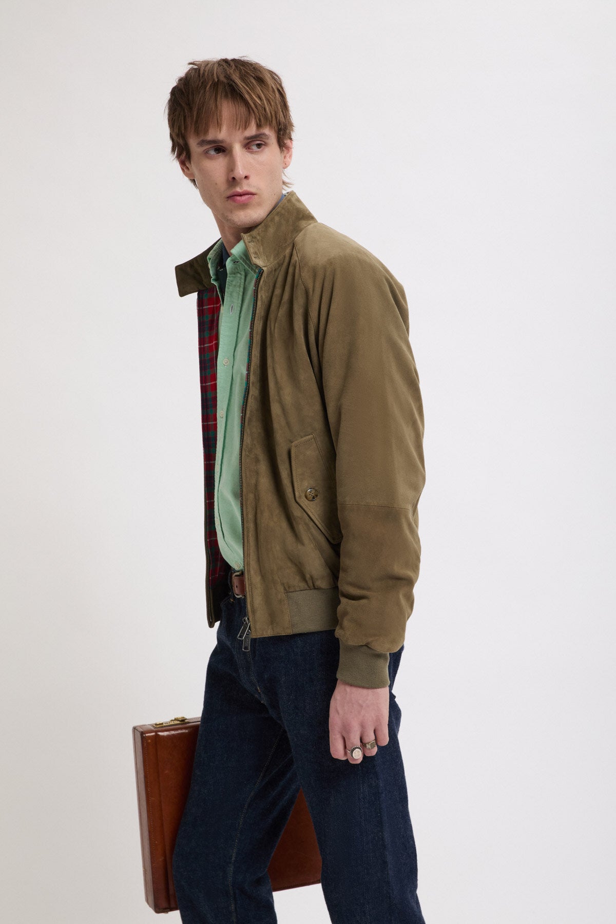La giacca in camoscio, un must-have per ogni guardaroba. Il G9 Suede Authentic Fit è proprio un classico Harrington Jacket, ma realizzato in puro camoscio. Questo capo è diventato un vero e proprio staple la cui popolarità è cresciuta negli anni proprio per merito della sua versatilità, fino a diventare un'inconfondibile icona di stile. La fodera Fraser Tartan è in tessuto traspirante Coolmax®. La giacca presenta il classico colletto a due bottoni, le tasche laterali oblique, lo spallone con motivo ad ombrello, i polsini, la vita e il collo interno a coste.