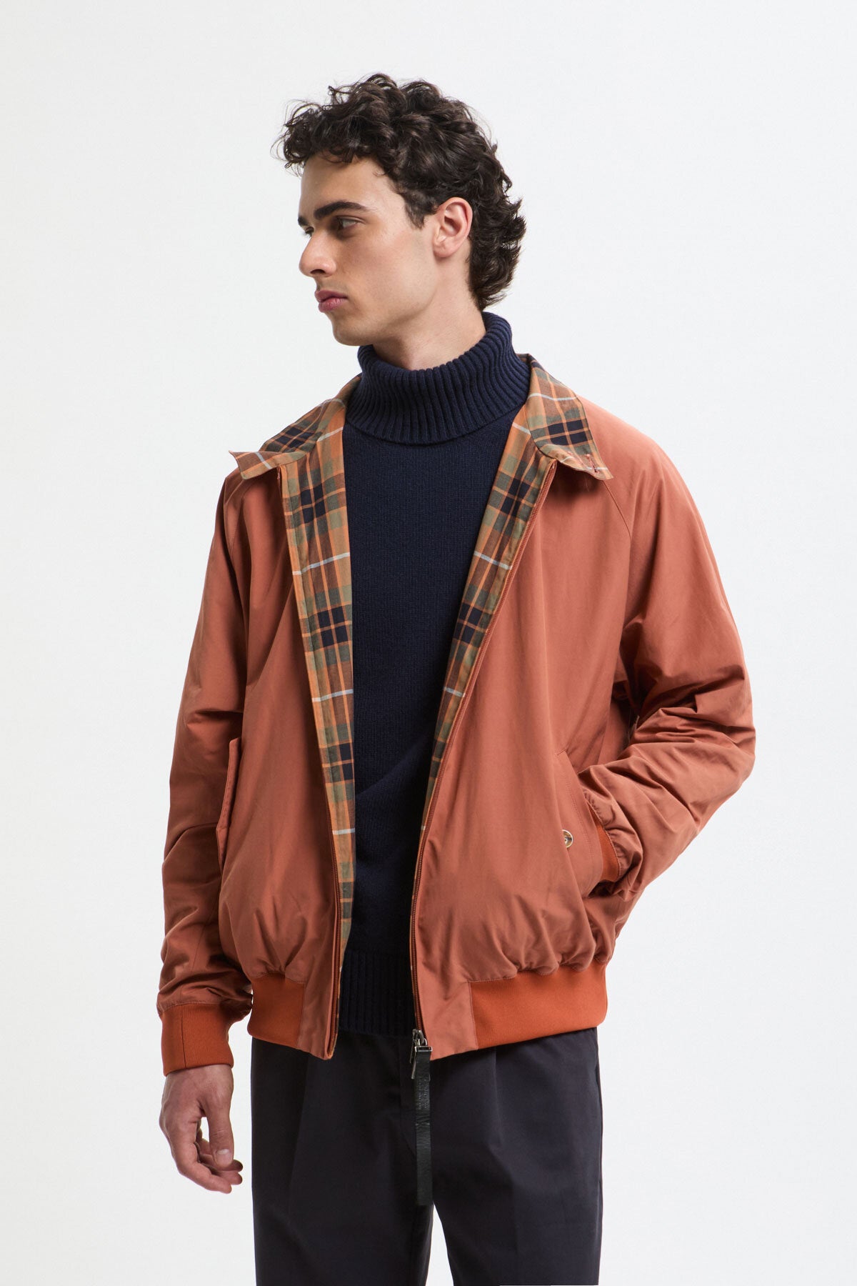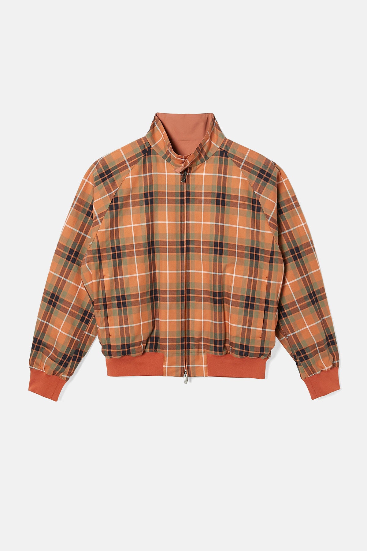 Questo capospalla completamente reversibile offre due look in uno ed è contraddistinto da un'esclusiva rivisitazione del classico motivo a quadri di Baracuta. L'orlo a costine ispirato alle tute da ginnastica vintage è stato rinforzato per donare al modello un tocco di eleganza, mentre lo scollo più largo lascia intravedere la fodera al di sotto. I dettagli contano: la chiusura a zip frontale con doppio cursore presenta l’inconfondibile linguetta in pelle di N.Hoolywood con logo inciso, oltre ai bottoni originali di Baracuta. La chiusura presenta all’interno un'ingegnosa cucitura di Baracuta in filo di aquilone per evitare che il cursore si impigli: perché sono le piccole cose a fare la differenza. Inoltre, sotto la costa posteriore sul lato a quadri è presente una minuscola tasca nascosta in cui riporre le etichette e una targhetta con doppio logo all'interno della tasca.