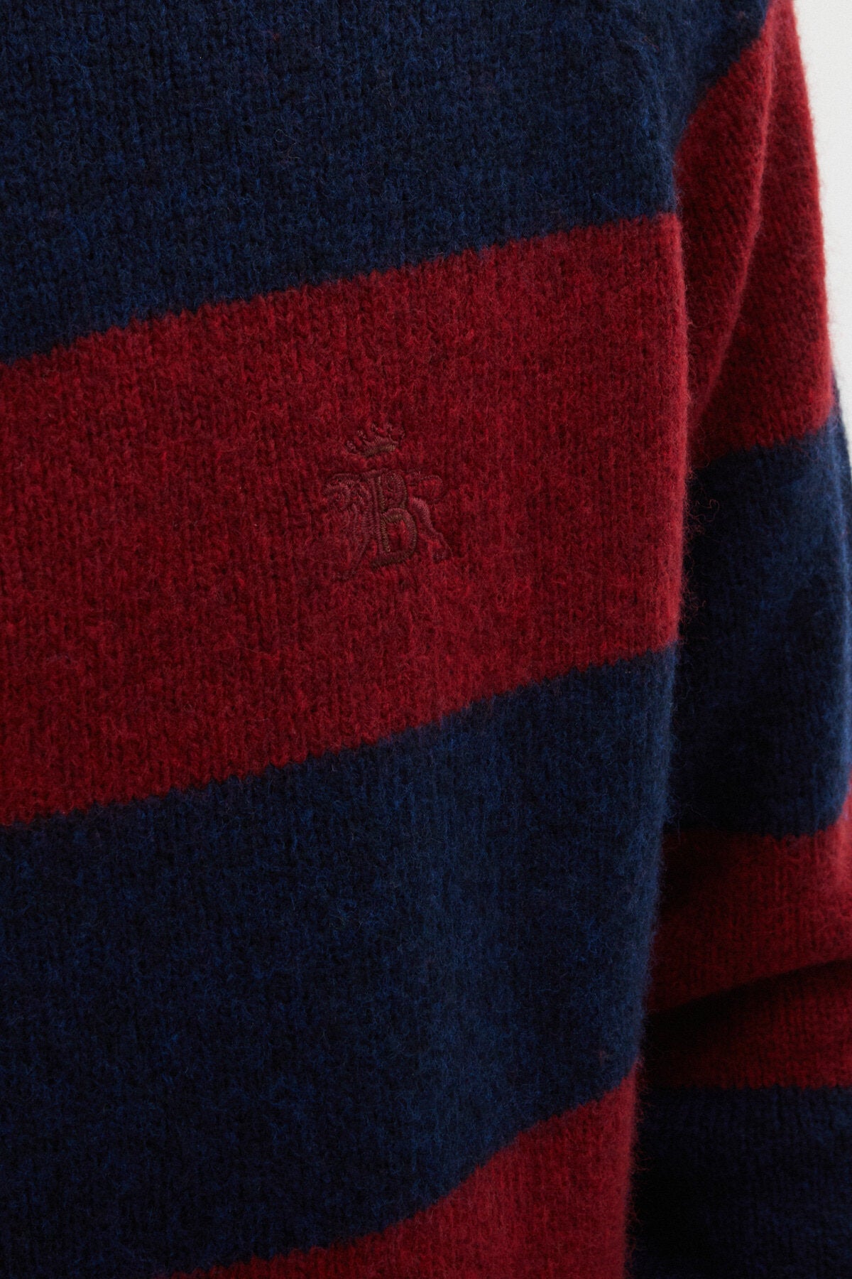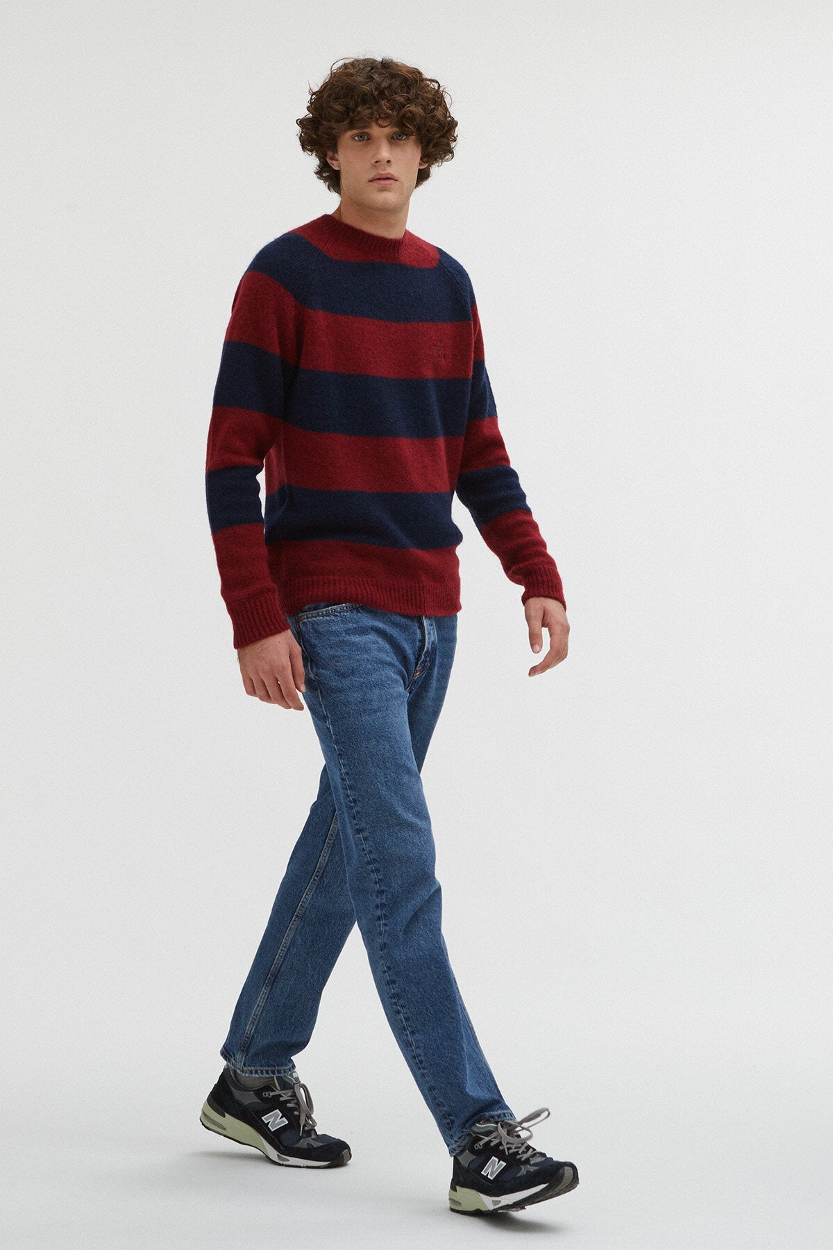 • Prepare yourself, our Shetland Stripes Crew Neck is here and it's incredibly soft and so comfortable you'll never want to part ways with it. It's characterised by the classic "shaggy dog" collar and the varsity-style stripes - typical of American Ivy League Colleges. The tone-on-tone embroidered logo detail embellishes the garment. We suggest pairing it with our G4 Cord for a relaxed yet put together look, also perfect for any setting, whether it be catching up with mates over a beer to spending a day at uni.