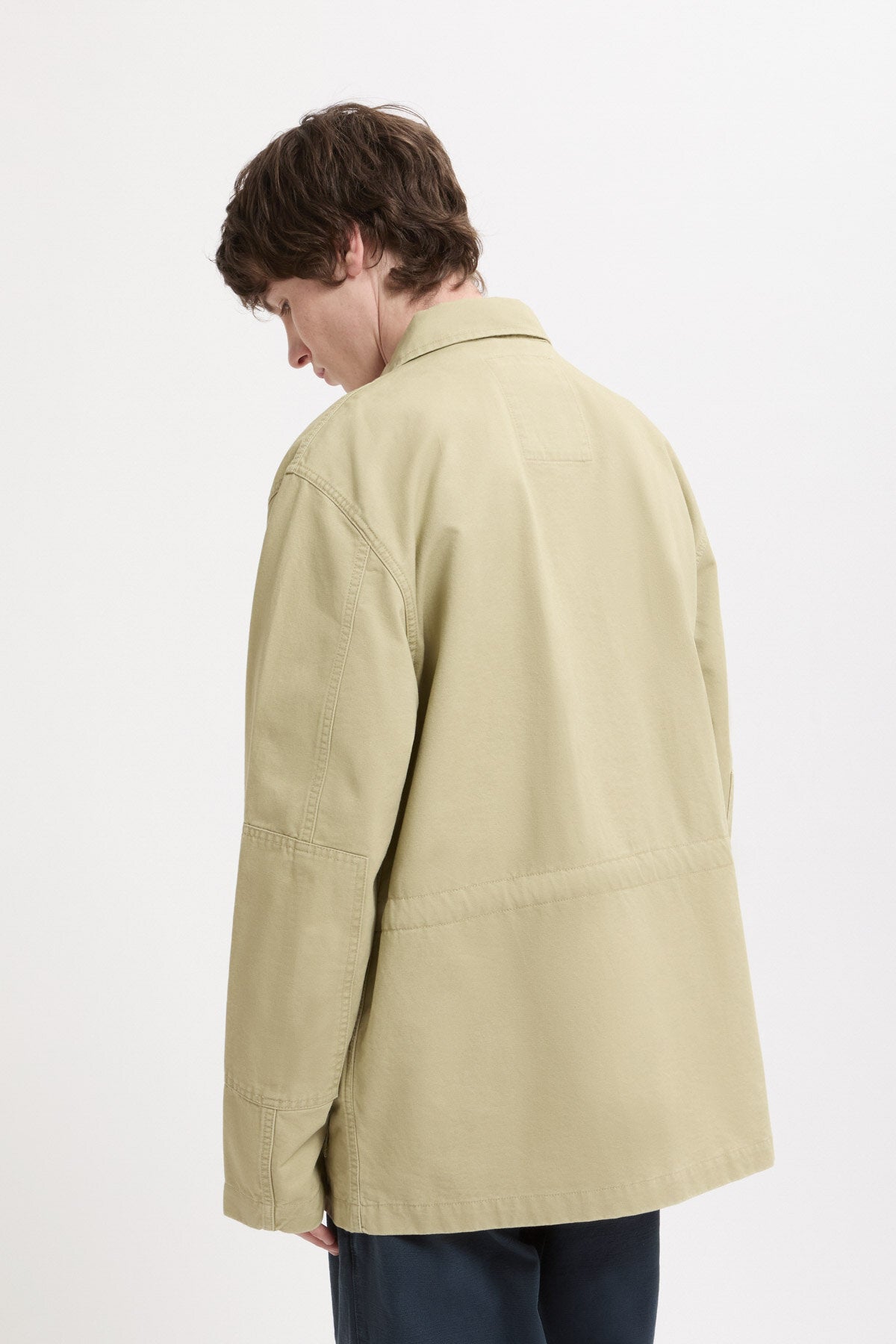 • The Twill Field Jacket is crafted from 100% cotton twill, a fabric celebrated for its distinctive diagonal weave that combines strength with softness. This structure not only gives the jacket subtle texture but also allows air to circulate, making it lightweight and breathable and ideal for layering across seasons.